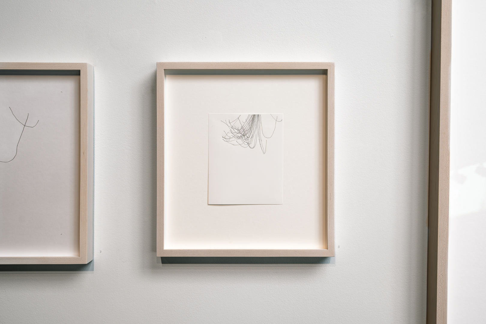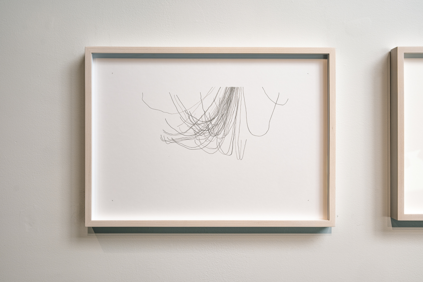 Lors de la présentation de l’installation Autofading_Se disparaître à la Galerie des arts visuels en 2021, j’ai invité Nancy Tobin pour élaborer une partition en mouvements avec le casque de réalité virtuelle. Cette collaboration a donné lieu à un dessin donnant à voir le câble reliant l’ordinateur au casque durant les déplacements de la performeuse en train d'explorer l'œuvre.nbjkbjkbhbcLors de la présentation de l’installation Autofading_Se disparaître à la Galerie des arts visuels en 2021, j’ai invité Nancy Tobin pour élaborer une partition en mouvements avec le casque de réalité virtuelle. Cette collaboration a donné lieu à un dessin donnant à voir le câble reliant l’ordinateur au casque durant les déplacements de la performeuse en train d'explorer l'œuvre.Clairières, graphite sur papier